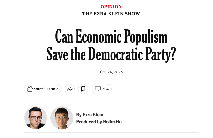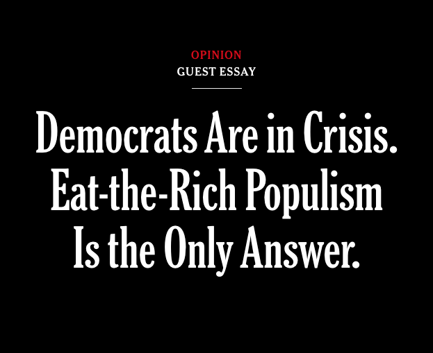 In this case, I think the obvious answer is for everyone to just be Bernie-light mini economic populists. I think mainstream Democrats are starting to understand this as well, as evidenced by the turn in their (mainstream Dems) bible, the New York Times (there was more, but Substack is telling me I have too much content in this one):